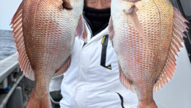 5:30〜 Dタイラバ1.0〜2.8kg 0〜2枚 船中8枚今日は赤がめっぽう強かったです。14:00〜 マダイ〜アジ小鯛、0.5〜1.0kg 0〜3枚メバルなど