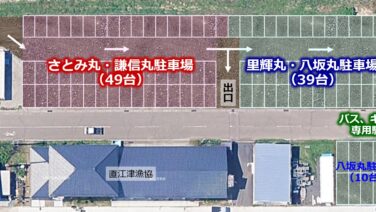4月中に旅客船の移動を行う関係で駐車場スペースと利用方法が大きく変わります。直江津漁協裏の駐車場(①)は、謙信丸とさとみ丸の移動により駐車場(②)へ変わります。駐車場は入口、出口専用通路があり、一方通行となります。車両の種類によっても駐車区...